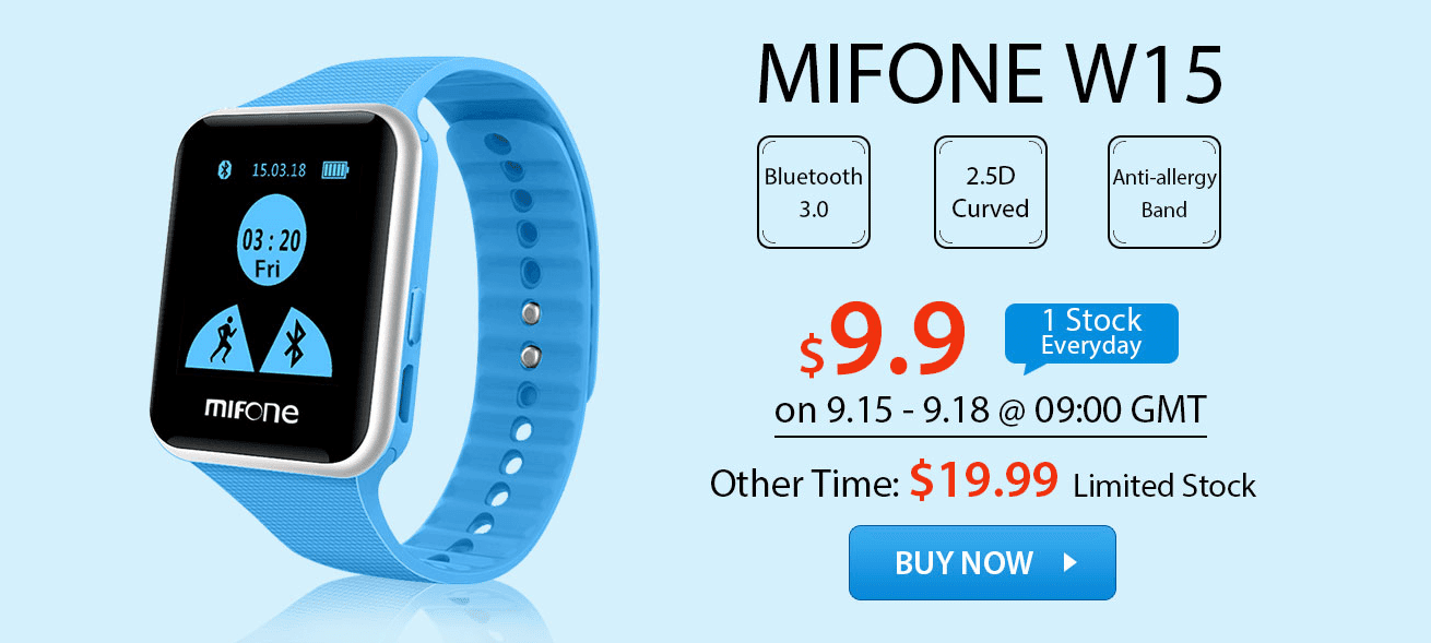 You will have a chance to buy it this smartwatch for only $9.99, in my opinion it would be a shame to miss this great opportunity. Main features of the MIFONE W15 are 2.5D screen, Bluetooth 3.0 and anti-allergic and safe strap. Also the screen is protected with the sapphire protection. Other features are more or less the same as in many other smartwatches in the same price range. In my opinion it looks really cool so it has beautiful design.